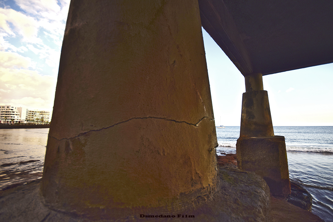 en la arena en medio de la playa, compartiendo espacio con los bañistas, oxidado y en el olvido.
